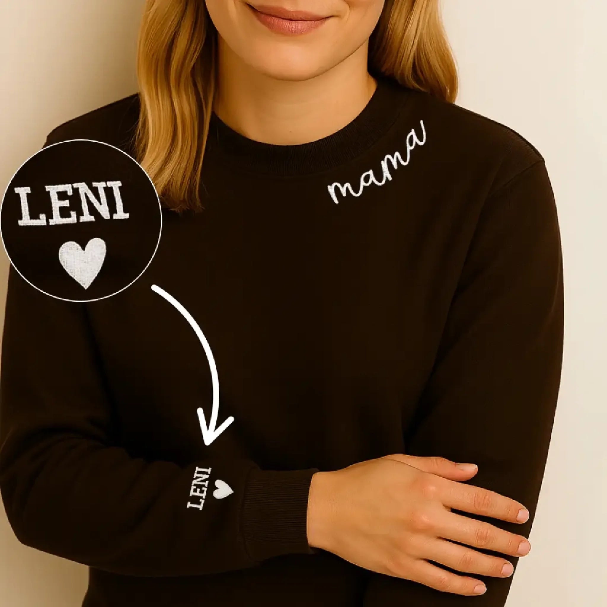Thanks to the loving and personalized embroidery, this sweater will quickly become a favourite in every mom's closet.